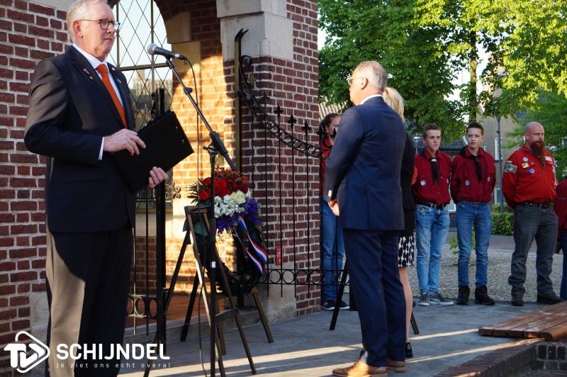 dodenherdenking10Schijndel - De Nationale Dodenherdenking bracht in Schijndel ook dit jaar weer vele mensen op de been. Om kwart over zeven vertrok een stille tocht naar de Markt voor de grote herdenking. Op een volle maar stille Markt werden drie kransen gelegd namens de gemeente Meierijstad, het Oranjecomité en de Bond van Oud Strijders. Ook werden er een gedicht voorgedragen, gemaakt door leerlingen van het Elde College. Ondanks dat de terrasjes overvol zaten door het mooie weer, was het ook daar muisstil tijdens de 2 minuten stilte. De toespraak van het college is hier terug te lezen. In het fotoboek is een uitgebreide fotoreportage te vinden. Beelden van de tocht en de herdenking zijn te vinden in de video.