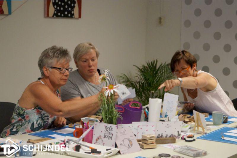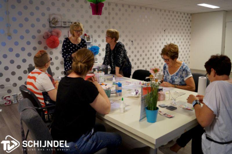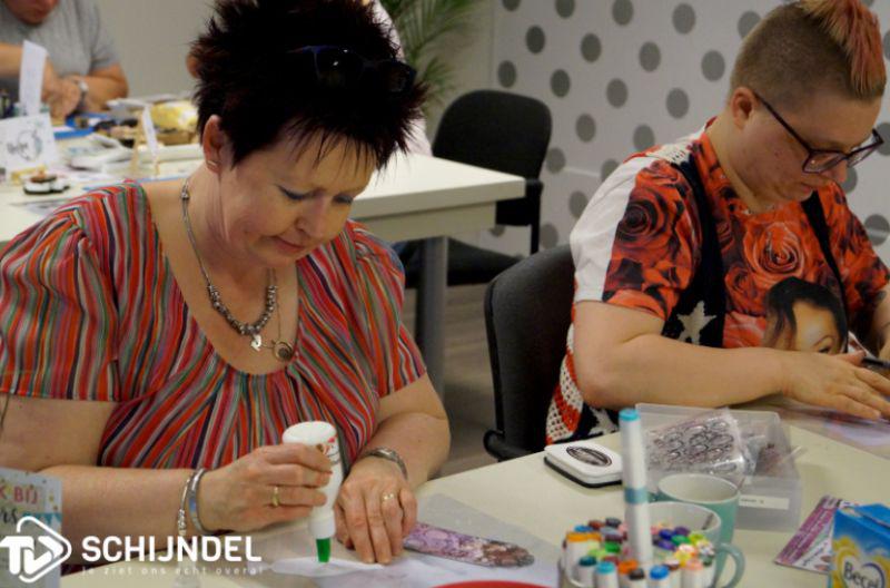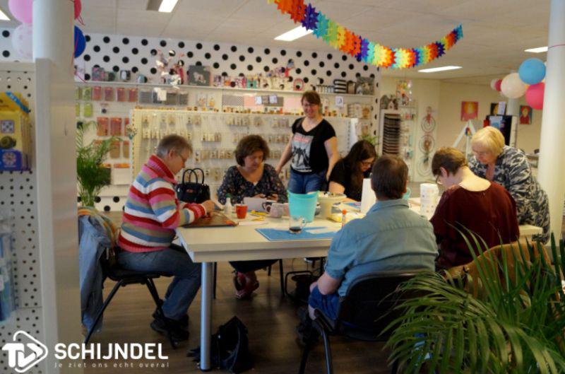 Schijndel - Het is al weer een jaar geleden dat de scrapsisters, de zussen Anja en Monique, hun hobbywinkel openden aan de Hertog Jan 2 laan 42a. En dat wilden ze graag vieren met een feestweek. Op zaterdag 5 mei werden er ook diverse activiteiten georganiseerd: het maken van make&take flower foam bloemen o.l.v. Ineke Bezemer, mini workshop mixed media o.l.v. Alice Huisman en het stempelen met Cats on Appletrees. Zoals de foto's laten zien was het gezellig druk, de scrapsisters waren dan ook dik tevreden met de goede opkomst. Onder lees meer een aantal foto's, in het fotoboek is een uitgebreide fotoseriete vinden
