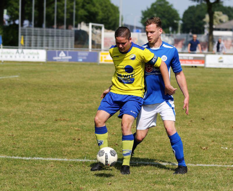 In de 43e minuut een prima actie van Dani van Wijk maar Kaj de Visser mist. Even later is het wel raak als een voorzet van Tjeerd Pijnenburg door Kaj de Visser in het doel wordt gekopt 0-1. Zo breekt de rust aan met een te kleine voorsprong voor Schijndel/DeWit gezien het betere spel en het overwicht in het veld. De 2e helft begint zonder wissels maar al snel moet Vincent van Rozendaal vervangen worden door Marc Onwezen en na een mooie actie van Dani van Wijk krijgt Marc Onwezen meteen de kans om de voorsprong te vergroten maar de keeper redt. In de 49e minuut een aanval via Marc Onwezen, Dani van Wijk en Stan Guns en Kaj de Visser schiet Schijndel/DeWit naar de 0-2. Even later kopt Martijn van Grinsven na een corner maar net over. Schijndel/DeWit blijft het spel beheersen tot in de 61e minuut Nieuwkuijk uit een vrije trap te gemakkelijk de 1-2 kan scoren. Even later krijgt Stan Guns de kans om de voorsprong te vergroten maar ook deze kans wordt niet benut. In de 65e minuut komt Brent Blummel Dani van Wijk vervangen en een paar minuten later belandt een vrije trap van Kaj de Visser op de lat. In de 70e minuut brengt Kaj de Visser via een tegenstander de stand op 1-3. De geblesseerde Martijn van Grinsven wordt nog vervangen door Emiel Bijnen. De strijd lijkt gespeelt maar door niet goed verdedigen brengt Nieuwkuijk de spanning terug tot 2-3. Nieuwkuijk speelt alles of niets en Schijndel/DeWit staat onder druk. Even later krijgt Brent Blummel nog de kans om de voorsprong te vergroten maar deze gaat verloren. In blessure tijd valt een vrije trap zonder ingrijpen van de verdediging zomaar in het doel van Schijndel/DeWit en zo wordt de overwinning geheel onnodig weggegeven 3-3. De strijd om de derde plaats van onder zal zondag veilig gespeeld moeten worden als de kampioen Real Lunet op bezoek komt.