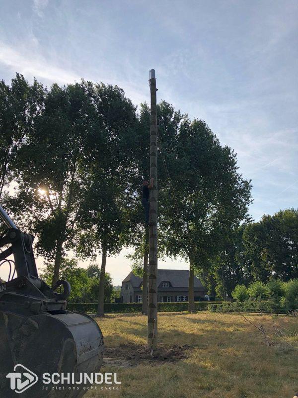 Schijndel - Afgelopen week zijn de palen voor het paalklimmen in het Wijbosch alweer geplaatst. Dit jaar wordt op 8 september de elfde editie van het Paalklimmen Wijbosch georganiseerd. Dit jaar is er wederom een markt met onder andere workshops waar je aan kunt deelnemen, lekker eten en drinken, kraampjes met allerlei snuisterijen, kinderen kunnen worden geschminkt, er is een clown, een luchtkussen en er is een huifkar waar ze een ritje mee mogen rijden. Het geheel wordt muzikaal ondersteund door oa. de band Yellow Pants…..en natuurlijk wordt er ook geklommen op zaterdag 8 september. Klimmen in palen van 14 meter hoog, de bel luiden. Gewoon om eens te proberen om te kijken of je toch ook die waaghals bent of om mee te doen aan de competitie, de snelste tijd proberen neer te zetten en naar huis gaan met een beker en natuurlijk een jaar lang de titel. De jeugd vanaf 8 jaar kan zich aanmelden om 14 uur de volwassenen vanaf 16 jaar om 20 uur.