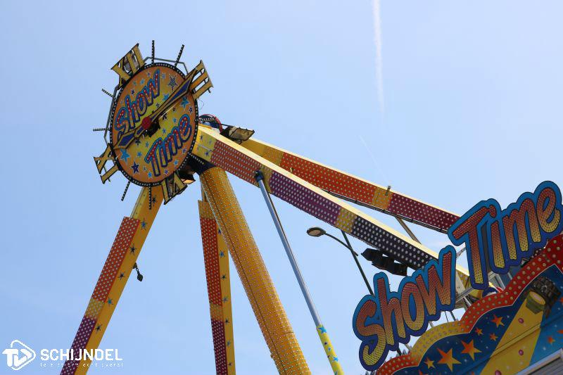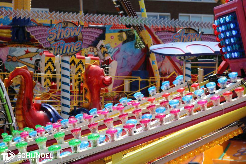 Schijndel – De kermis in Schijndel is van start gegaan. Kermismeester Harrie Vossen opende kort na 13.00 uur het terrein aan de Steeg. “Met de stille trom dit jaar”, aldus Vossen. Er was tot zijn spijt geen act of wethouder betrokken bij de opening. Direct na de opening kwam de jeugd het terrein op en werden de attracties in gebruik genomen. Tot en met komende woensdagavond kan Schijndel weer genieten van ruim 25 attracties en vermaak. De Show Time, een geheel gerestylede attractie met nieuwe gondels en nieuwe verlichting, heeft in april dit jaar de fabriek verlaten en staat als publiekstrekker in Schijndel. TVSchijndel nam voor de opening alvast een kijkje op het zonovergoten kermisterrein, voor enkele foto's van de attracties zie ‘lees meer’.