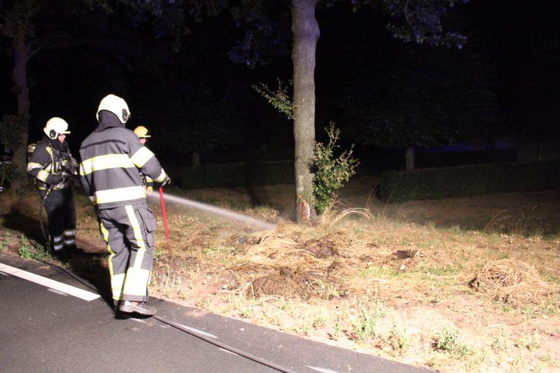 Schijndel - Zondagmorgen 15 juli omstreeks 02.00 uur werd de brandweer van Schijndel opgeroepen voor een buitenbrand langs de structuurweg ter hoogte van de spoorwegovergang van het duits lijntje. Er was stro gaan branden in de berm. De brandweer heeft de brandjes geblust en tijdens het blussen werd ook het verkeer geregeld door de brandweer. (Tekst en foto's Christian van den Broek). |
