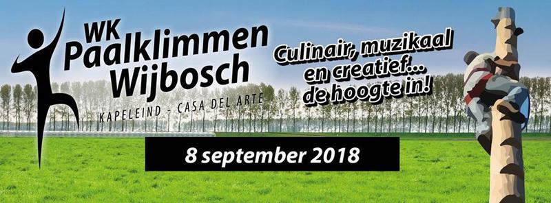 Schijndel – De voorbereidingen waren eind mei al begonnen, en bandjes en artiesten zijn geboekt. Zaterdag 8 september 2018, is het weer zover, jij wordt uitgedaagd om mee te doen aan deze 11e editie van het populaire WK Paalklimmen. Culinair, muzikaal en creatief de hoogte in. Met later op de avond als extra een optreden van een Mystery Guest. Het programma is inmiddels bekend. Standhouders voor deze 11e editie kunnen zich nog aanmelden (aanmelding sluit op 18 augustus). Wil of durf je mee klimmen dan kun je je via de speciale aanmeldpaginavoor klimmers op de website aanmelden (jeugd 8 t/m 15 jaar en 16 jaar en ouder). Ook op de dag zelf kan de jeugd zich om 14 uur zich aanmelden, de volwassenen vanaf 16 jaar om 20 uur. Hieronder vind je het complete programma.