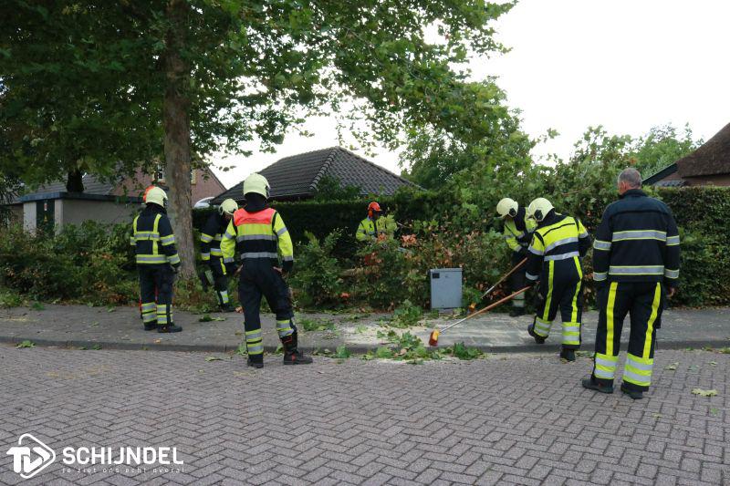 Schijndel - Het waait hard in Nederland. De overgang van warmte naar koelte zorgt voor onstuimig weer met harde wind(stoten). Daarom is code geel afgegeven voor Brabant. Aan de Hopstraat bleek een top van een boom niet bestand tegen de harde wind(stoten) en brak af. De grote takken kwamen op de stoep en deels in een naastgelegen tuin en heg terecht. De brandweer van Schijndel werd opgeroepen om de top in stukken te zagen. Enkele foto's en een korte video onder 'lees meer'.Harde wind(stoten) zorgen in Nederland voor #codeoranje en #codegeel. Op de Hopstraat brak de top van een boom af. Brandweer #Schijndel werd opgeroepen en heeft de top in stukken gezaagd. #Meierijstad https://t.co/Fso9KvOZb8 pic.twitter.com/WEdD74i8Xf