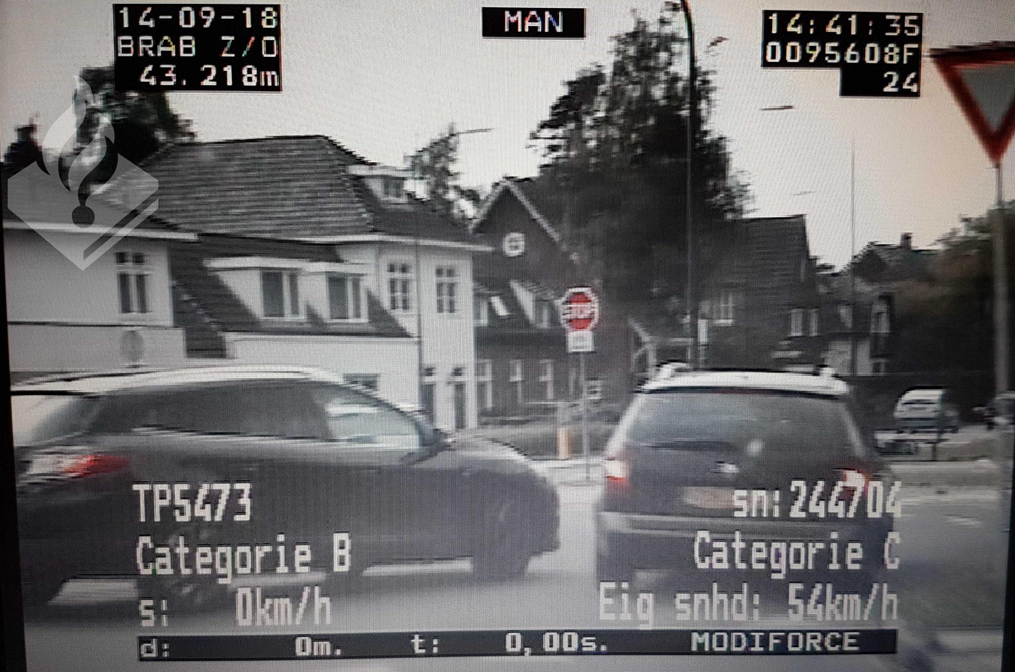 De bestuurder en 2 passagiers vluchtten weg. De passagiers werden snel gevonden maar de bestuurder werd pas na ruim een uur door een medewerker op het toilet van een nabijgelegen fietsenwinkel gevonden. Dankzij kordaat optreden van personeel van de winkel kon de verdachte alsnog worden aangehouden. De bestuurder, een 18-jarige Bosschenaar, had geen rijbewijs. Hij zit nog vast. Er wordt proces-verbaal opgemaakt en hij zal zich moeten verantwoorden voor de rechter.