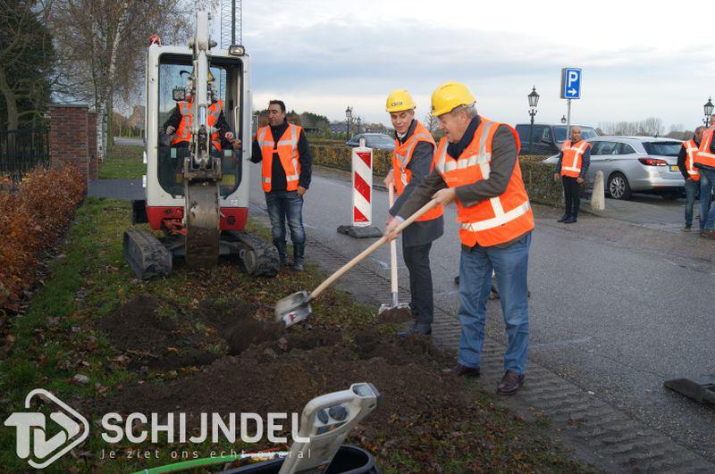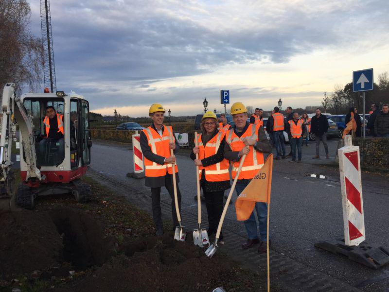 Meierijstad / Sint Michielsgestel - In Schijndel is gisteren de eerste schop in de grond gegaan voor de aanleg van het glasvezelnetwerk in Meierijstad en Sint-Michielsgestel. De eerste graafwerkzaamheden werden uitgevoerd door de wethouders Harry van Rooijen van Meierijstad, Lianne van der Aa van Sint-Michielsgestel en Jos van der Klauw, directeur Bouw en Beheer van Glasvezel buitenaf. Op 7 mei dit jaar werd bekend gemaakt dat er glasvezel in dit gebied komt, toen 71% van de inwoners zich had aangemeld. Wethouder Van Rooijen is zeer te spreken over de glasvezelcampagne: "De campagne is heel goed verlopen. We hebben een kleine 60 ambassadeurs in dit gebied die zich heel goed hebben ingezet om dit resultaat te halen. Daar mogen zij en wij trots op zijn. Met glasvezel geven we een economische en leefbaarheidsimpuls aan ons omvangrijke buitengebied." Zie ook de foto's in hetfotoboek. Ook wethouder Van der Aa is blij met de komst van glasvezel. "We hebben in dit gebied veel (agrarische) bedrijven, voor wie een goede internetverbinding tegenwoordig onmisbaar is. Met dit glasvezelnetwerk houden wij deze regio aantrekkelijk, niet alleen voor agrariërs en andere ondernemers, maar voor alle inwoners," aldus Van der Aa. Goede samenwerking Jos van der Klauw is ook blij met dit resultaat: "We vinden het fantastisch om te zien dat we met 71% ruim over de ondergrens van de campagne zijn gegaan. Dat hebben we te danken aan een goede samenwerking in dit gebied, zowel met de ambassadeurs als met de gemeenten." Aannemer Van Gelder voert de werkzaamheden in dit gebied uit. De werkzaamheden starten in het gebied tussen Schijndel en Sint-Oedenrode. Naar verwachting duurt het ongeveer een jaar totdat alle aansluitingen in het gebied gemaakt zijn. In totaal gaat het om ongeveer 509 km glasvezel. Meer informatie Meer informatie, ook over de planning van de aanleg, is beschikbaar op de website glasvezelbuitenaf.nl-meierijstad-sint-michielsgestel. Bewoners kunnen voor vragen over de aanleg van glasvezel in hun gebied door Glasvezel buitenaf contact opnemen met de klantenservice, via 088-7585800.