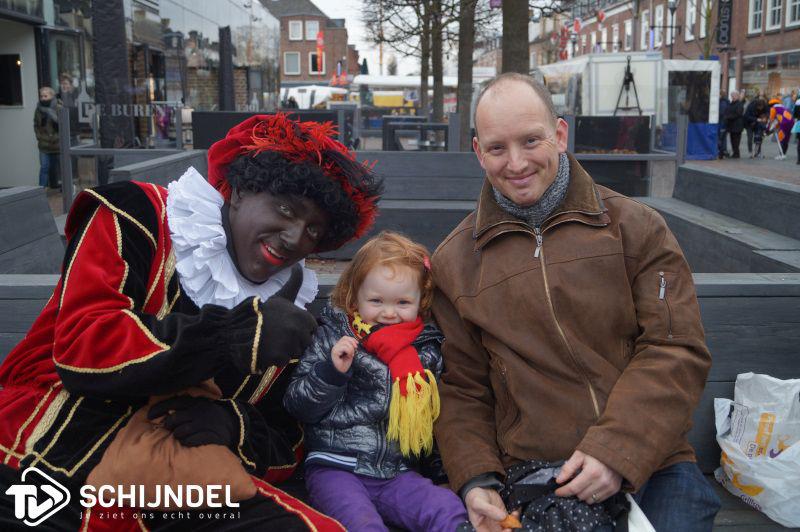 Schijndel - Zaterdag 1 december tussen 12.00 en 16.00 uur waren er veel zwarte pieten in het centrum van Schijndel. Vooral op de markt was het een gezellige boel onder prima weersomstandigheden. Ook Sinterklaas was met zijn gevolg tussen 13.00 en 14.00 uur even langsgekomen en vele bezoekers aan de markt, zowel jong als oud, wilden graag op de foto met de Sint of zwarte Piet. Er werd vrolijk gedanst met de pieten in de bekende Pietenparade. Zij waren ook erg gul met het uitdelen van pepernoten. Vele bekende pieten waren aanwezig. onder andere DJ Piet, Kekke Piet en Glutenvrije Piet. TVSchijndel was ook aanwezig en legde de gezelligheid vast met vele foto's. In ons fotoboek ziet u er nog veel meer.