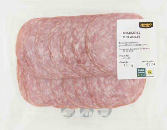 Product Jumbo Brabantse metworst EAN-code 2240010000000 THT 3-12-2018 of later