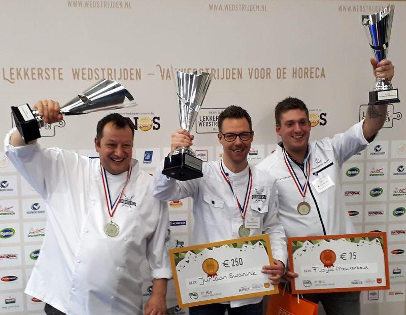 Amsterdam - Het was voor VITAM uit Schijndel een bijzonder succesvol Horecava in de RAI, waar de ondernemende cateraar meerdere malen in de prijzen viel. De stamppot Winter Wonderland van VITAM chef Rob Kramer werd het ‘Lekkerste Stamppotje met minder zout’ en de Vis op het droge van zijn collega Juriaan Swanink werd bekroond tot de ‘Lekkerste Maaltijdsalade’. Naast hen op het erepodium stonden de VITAM chefs Peter Nass en Roland Biermans, die de tweede plaatsen veroverden met hun stamppot, broodje en maaltijdsalade. Daarnaast mocht VITAM de Foodservice award binnen de categorie catering in ontvangst nemen: een waardering van de lunchgast die vooral de gastgerichtheid van de cateraar prijst. Bron: tekst en foto's VITAM