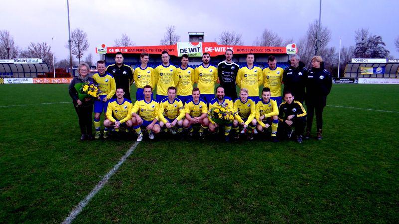 Schijndel - Een uniek gegeven dat een lagere senioren elftal geheel in het nieuw is gestoken. Voetbaltenue, inloopshirts, polo’s, trainingspakken en tassen. Dit maak je niet veel mee maar het is gerealiseerd door drie sponsoren. Café de Triangel, Parket vloerenbedrijf M.v. Oss en Jeando borduurstudio. Als vereniging en sponsorcommissie zijn ze dan ook super trots op deze geste. Op deze koude natte zondagochtend 10 maart bedanken zij dan ook deze sponsoren met een welgemeend boeket bloemen. Men laat bij deze dan ook andere sponsoren triggeren om dit zo mooie voorbeeld te volgen. Nogmaals een woord van dank aan deze drie sponsoren. Schijndel 7 is blij en trots om de tenue's te kunnen dragen.
