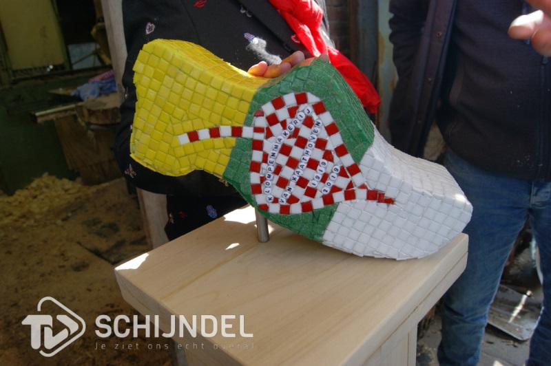 Schijndel – Gisteren vierde Klompenmakerij Van Kaathoven het honderdjarig bestaan. Bij de opening werd door Burgemeester Van Rooij een kunstwerk onthuld: een beeldje in de vorm van een klomp met de kleuren van Schijndel. Dit was het begin van de open dag in de klompenmakerij. Er waren verschillende rondleidingen en demonstraties klompenspelletjes voor de jeugd. De Heemkunde was ook aanwezig om over de historie van Schijndel en de slag van Boxtel te vertellen. De gebroeders Has en Jas brachten ook een bezoekje aan het eeuwfeest. Bezoekers konden meer informatie krijgen over de opening van de klompenbeleefroute. Deze wordt 25 april om 16.00 gestart door wethouder Van der Pas. In het fotoboek vindt u een beeldverslag.