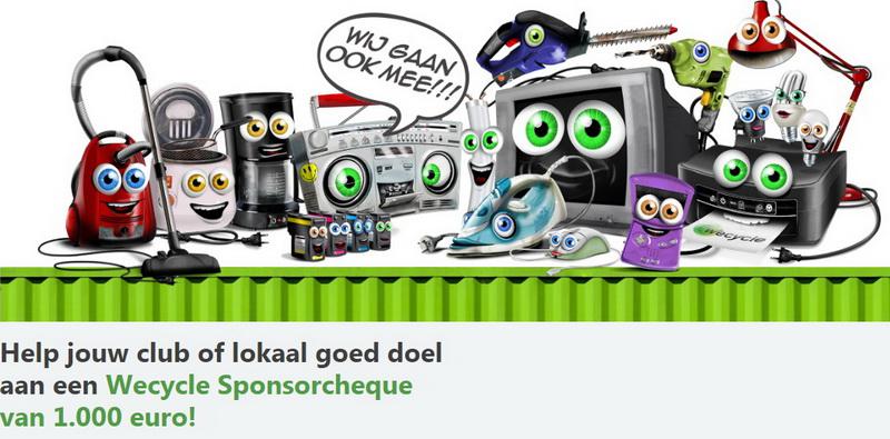Help een goed doel of club aan een sponsorcheque Met een zelf verzonnen inzamelactie maken inwoners kans op een cheque voor een lokaal goed doel of een club. Om de eigen actie breed bekend te maken kan gebruik worden gemaakt van het gratis promotiemateriaal op wecycle.nl inleveren. Belangrijk is dat het inlevermoment op de Milieustraat vereeuwigd wordt met een foto of kort filmpje. De sponsorcheque-actie loopt tot en met 9 juni 2019. Alle actievoorwaarden staan uitgelegd op milieustraat.wecycle.nl-actie.