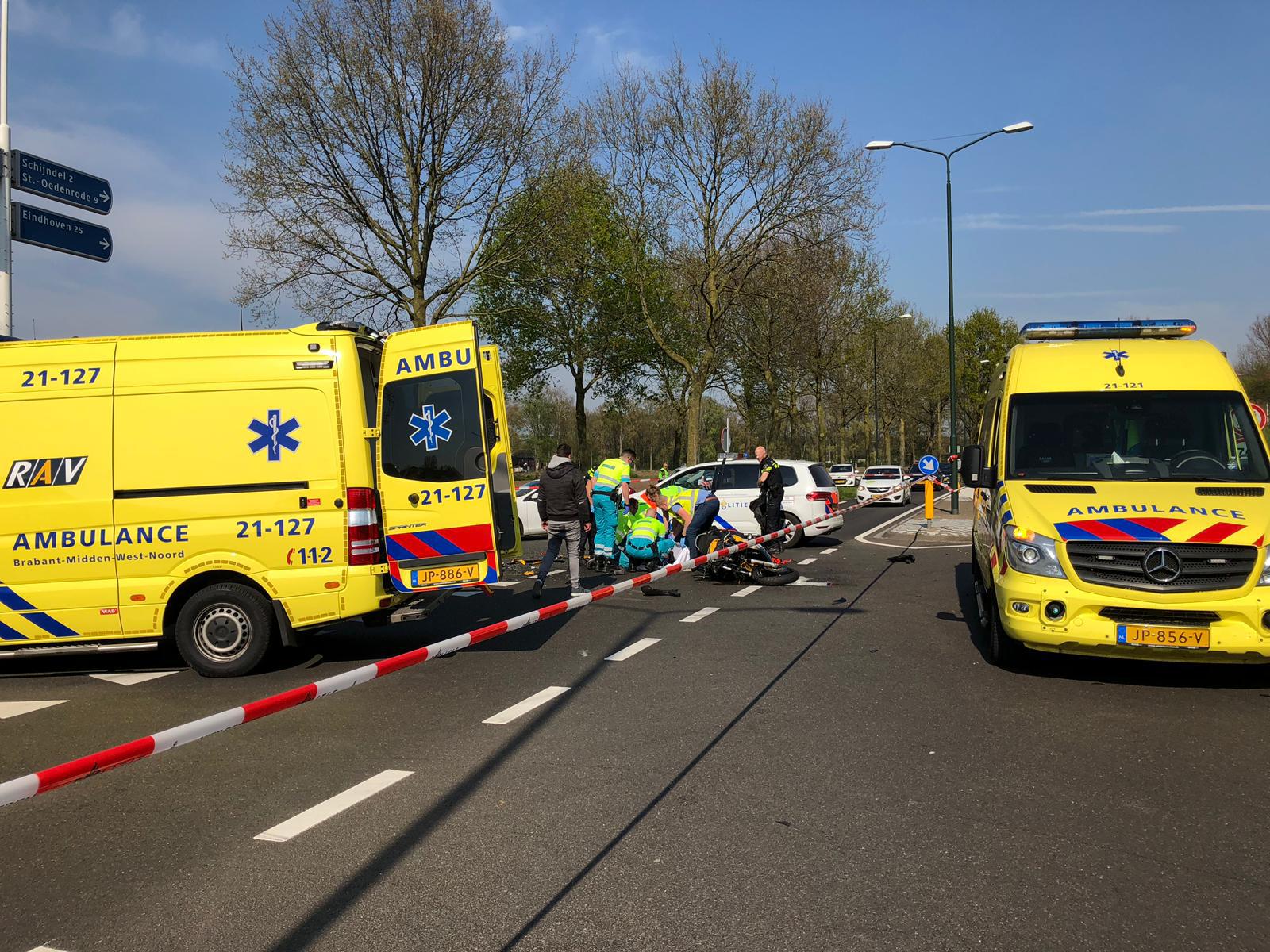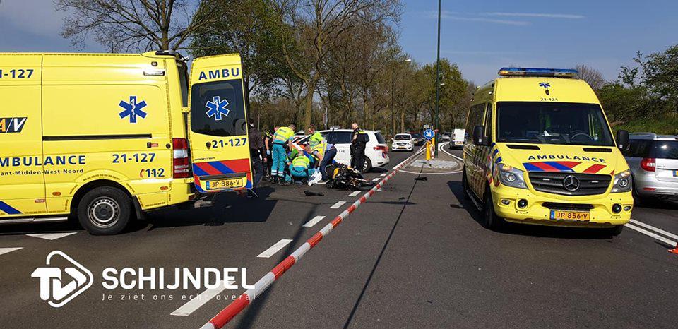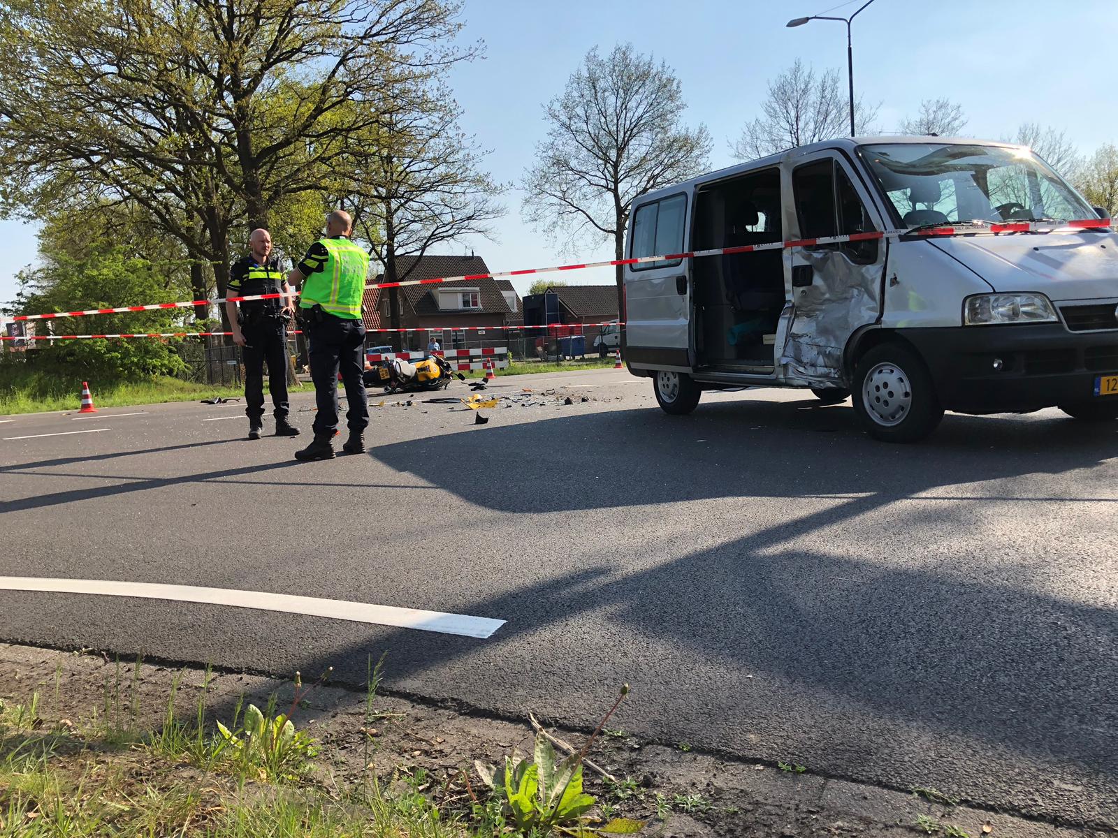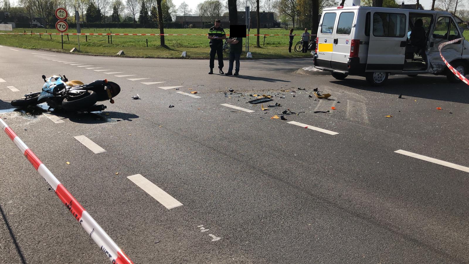 Schijndel - Op de kruising Molendijk-Noord met de Structuurweg heeft donderdagmiddag rond 16.15 uur een ernstig ongeval plaatsgevonden. Een bestuurder van een busje sloeg af vanaf de Structuurweg naar de Molendijk-Noord maar zag daarbij een motorrijder over het hoofd. De motorrijder reed op dat moment op de Structuurweg rechtdoor richting de Boschweg. Een forse botsing was het gevolg. Het busje raakte zwaar beschadigd aan de bijrijderskant. De motorrijder was niet aanspreekbaar en is met spoed door een ambulance naar het ziekenhuis gebracht. Er kwamen meerdere ambulances en politievoertuigen op het ongeval af. Ook een traumahelikopter werd opgeroepen maar door de ernst van de verwondingen heeft het ambulancepersoneel besloten niet op de heli te wachten. De politie sloot de Structuurweg af vanaf de Zwembadweg en de Boschweg. (foto's: Christian van den Broek)