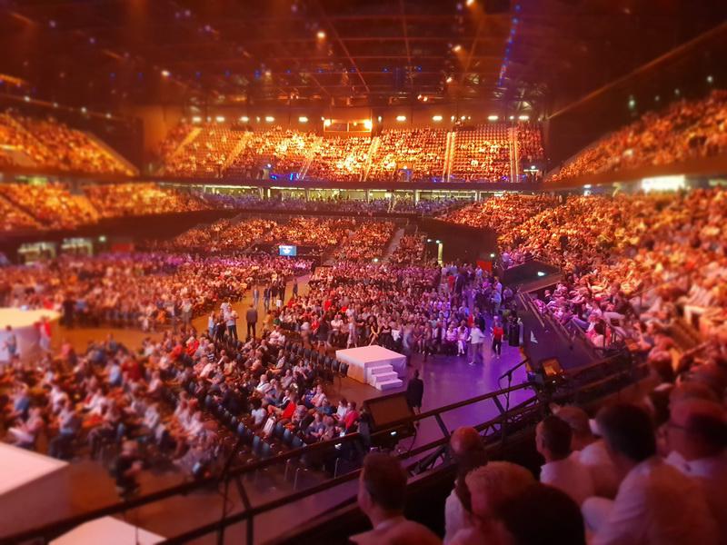 Repetities We hadden al twee superfijne zaterdagen gerepeteerd in Veenendaal met 400 koorleden onder leiding van Maarten Wassink (van The Choir Company). Maar zaterdag 20 april was dan toch 'de dag'. Om 12.00 uur vertrokken we naar Rotterdam, bij binnenkomst werden we verdeeld in twee groepen van 200 personen. Gelukkig zaten wij met z'n tienen in het zelfde vak, links van het het podium en orkest onder leiding van bandleider en arrangeur, Eric van Tijn. In de middag werd er nog volop gerepeteerd door de artiesten en het koor. Leuk en wonderbaarlijk om te zien hoe zo'n groots optreden volgens een draaiboek, het licht, geluid en plaats op elkaar wordt afgestemd. Ook het dragen van het grote witte kruis werd nauwkeurig geoefend.