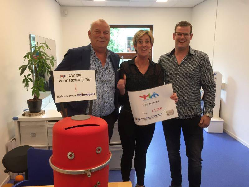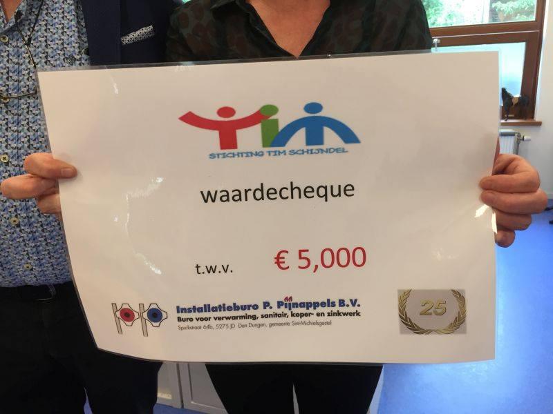 Schijndel - Onverwachts en een bijzondere verrassing voor stichting TIM. Kort geleden bestond installatiebureau van Peter Pijnappels 25 jaar. "Op zich een prachtige mijlpaal maar oprichter Peter Pijnappels besloot bij deze gelegenheid na vele jaren hard gewerkt te hebben om de pannen erop te gooien en het roer over te geven aan zijn zoon Koen en zijn mede bestuurders. Dus met pensioen en een mooi afscheidsfeestje voor Peter. Veel bloemen, giften en drank? Nee daar koos Peter niet voor!", laat Wim Vermeulen weten op Facebook. De afgelopen jaren had Peter de acties voor stichting TIM in de Drie Linden in Den Dungen bezocht en zijn besluit was duidelijk: Graag jullie giften in een bekend voorwerp van installatiebureau Pijnappels: een expansievat! Vandaag kwamen Peter en zijn zoon Koen de opbrengst overhandigen aan een dolgelukkige voorzitter van Stichting Tim, Astrid Meulenbroek. "Sprakeloos: een gift van 5000 euro! Peter en Koen namens stichting TIM heel heel veel dank en alle succes in de toekomst en voor Peter nog vele gezonde pensioenjaren!", aldus Wim.