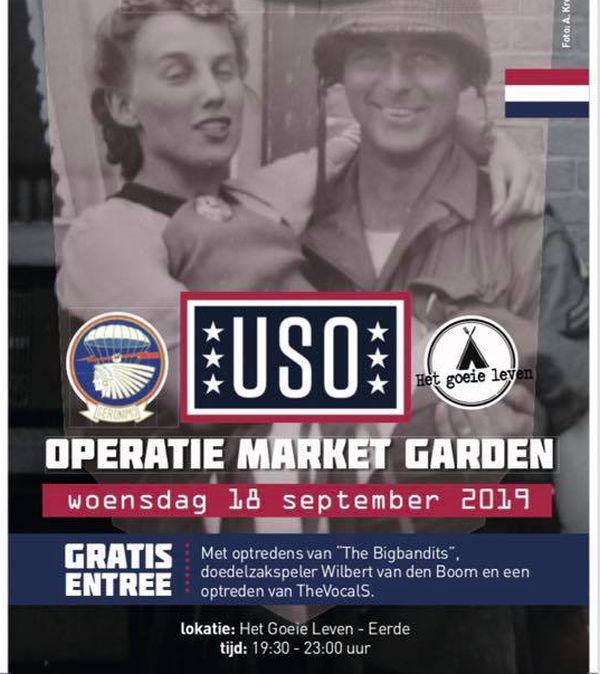 Schijndel / Eerde - Deze week een bijzondere week op de Vlagheide, nagenoeg iedereen heeft er inmiddels over gelezen of is erbij. We herdenken namelijk 75 jaar operatie Market Garden. Op woensdag 18 september is er bij camping Het Goeie Leven Vlagheide 8b een heuse gratis toegankelijke USO show. USO is een show ten tijde van oorlog met muziek en vermaak. Om zo de soldaten even de ellende van de oorlog te laten vergeten. Leuk als je erbij bent. De show wordt gegeven vanaf 19.30 uur tot 23.00 uur in Eerde. |