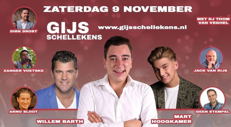 Het feestbeest had al landelijke bekendheid door zijn deelname aan het RTL-programma “Levenslang met dwang”, waar hij aan meedeed om van zijn dwangstoornis af te komen. Dat was een zeer succesvol traject, maar toch heeft hij nu de dwang om op het podium te staan niet meer onder controle! Onder andere de Nederlandstalige hits ‘Daar sta je dan’, ‘Kali’ en ‘Jij liet mij vallen’ zorgen ervoor dat de artiest in hem losbreekt, maar binnenkort zal hier ook zijn eigen debuutsingle aan toegevoegd worden. Nog dit jaar geeft Gijs zijn eigen concert waarbij niet alleen de première hiervan te horen zijn zal, maar ook de vele covers en diverse gast-artiesten uit het vak zoals Willem Barth, Mart Hoogkamer en Geen Stempel.