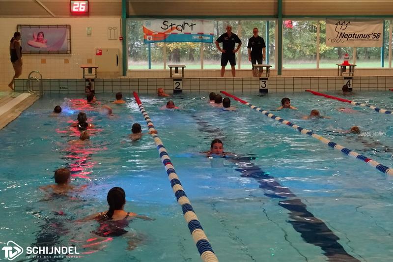 Schijndel - Afgelopen week hebben in totaal 223 zwemmers meegedaan aan de 45e Schijndelse Zwemvierdaagse, georganiseerd door zwem- en waterpolovereniging Neptunus ’58 en Zwembad De Molen Hey. Daarmee waren er iets meer deelnemers dan vorig jaar aan dit gezellige en sportieve evenement, waarbij zwemmers dagelijks 10 of 20 banen moeten zwemmen. Na vier dagen zwemmen kon een medaille in ontvangst genomen worden. TVSchijndel nam maandag een kijkje en maakte een leuke fotoreportage Een derde deel van de zwemmers deed voor de eerste keer mee en behaalde daarmee een bronzen medaille. Dit is fors meer dan de afgelopen jaren. 25 zwemmers behaalden zilver, 24 zwemmers goud en maar liefst 29 zwemmers goud 4 (voor de vierde deelname). De medailles liepen zo op tot en met goud 27 en goud 33. Bijna tachtig procent van de deelnemers kwam uit Schijndel, maar ook uit Berlicum, Den Dungen, Heeswijk-Dinther, Vinkel en zelfs Oss en Eindhoven wisten zwemmers afgelopen week De Molen Hey te vinden.