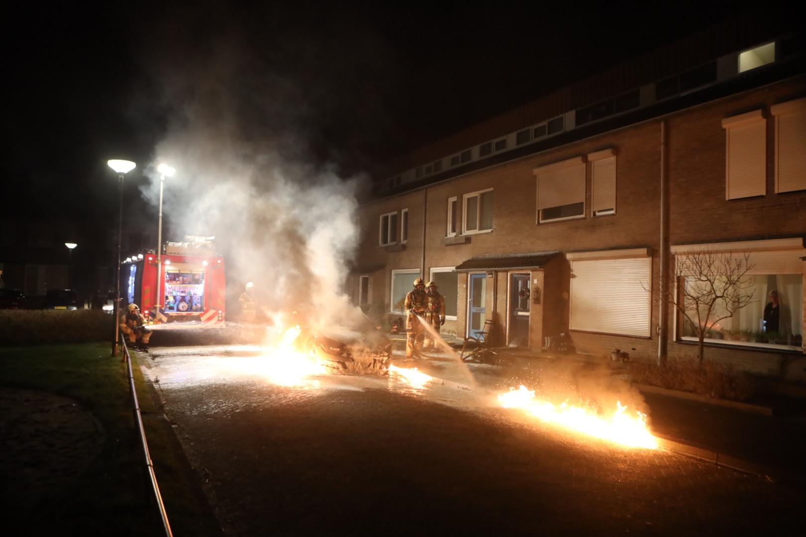 Schijndel - Aan de Karel Doormanstraat in Schijndel woedde zondagavond kort na 23.00 uur een felle autobrand. De brandweer had de nodige moeite om de immense vlammenzee te blussen. Het voertuig lekte brandstof welke in het riool terecht kwam wat eveneens vlam vatte. Ondanks de inzet van de brandweer is het voertuig volledig uitgebrand. Naast een blusvoertuig kwam ook een waterwagen met extra bluswater ter plaatse. De brand trok veel bekijks van omwonenden. De politie onderzoekt de brand en verstuurde een Burgernet bericht met de vraag om eventuele tips te melden. Een bergingsbedrijf heeft het uitgebrande wrak afgevoerd.Foto's en info: Persburo Sander van Gils MEIERIJSTAD - Schijndel, Karel Doormanstraat 13. Autobrand. Oorzaak is onbekend. Iets verdachts gezien?...https://t.co/UzcvIGU7B3