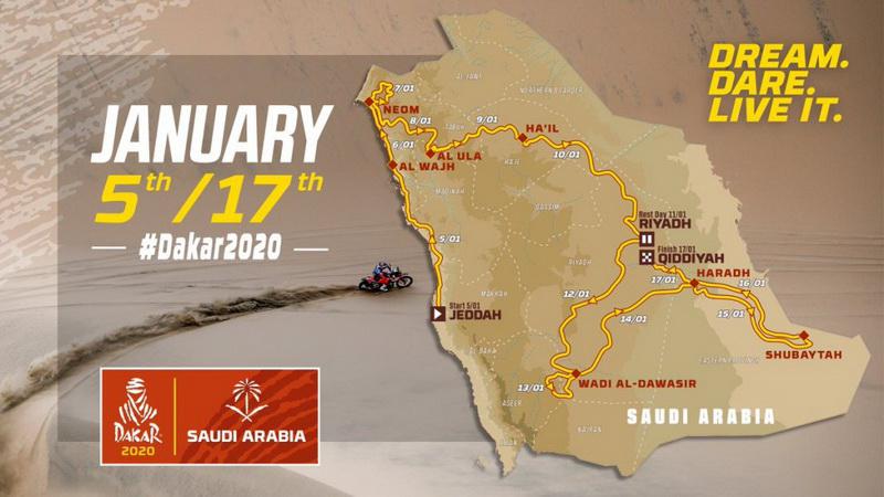 Route Van alle deelnemers die in Saudi-Arabië het avontuur aan gaan hebben er 65 ook al deelgenomen aan Dakar-edities in Afrika én Zuid-Amerika. Toch heeft de Dakar-organisatie voor alle deelnemers weer de nodige uitdagingen in petto. De totale route van Dakar 2020 bestaat uit ruim 7.800 kilometer, waarvan 5.000 getimede wedstrijdkilometers. In totaal staan er 12 etappes op het programma, die zowel het materieel, de rijkunsten als de navigatievaardigheden op de proef zullen stellen. Met technische paden, uitgestrekte vlaktes en pittige zandduinen biedt de 42e Dakar voor ieder wat wils.