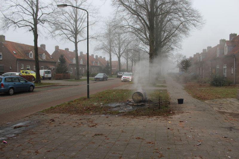 Schijndel - De brandweer is kort na half twee vandaag opgeroepen voor afval in brand. Aan de Deken Baekerstraat bleek een ton met stook afval nog na te roken. Ook de politie nam een kijkje bij de rokende afval. Gelukkig viel de brand mee. De brandweer heeft met kleine stralen het smeulende afval gedoofd. (Foto's en info: Christian vd Broek) |