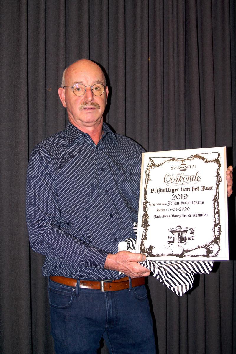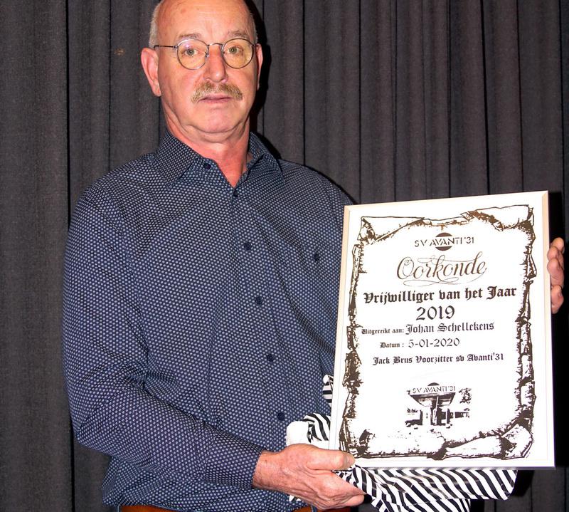 Vrijwilliger van het jaar Na deze huldigingen werd Johan Schellekens naar voren geroepen. Johan is al vele jaren leider van het 8e elftal, daarnaast al lang actief in de Zeskamp Commissie, waarvan hij inmiddels al een aantal jaren voorzitter is. Sinds enkele jaren maakt Johan deel uit van de Technische Commissie, waarin hij de belangen van de Lagere Elftallen behartigt. Onder luid applaus van de aanwezigen werd Johan Schellekens vervolgens uitgeroepen tot 'Vrijwilliger van het jaar' en ontving hij uit handen van Jack Brus het bijbehorende ingelijste diploma en een dinerbon.