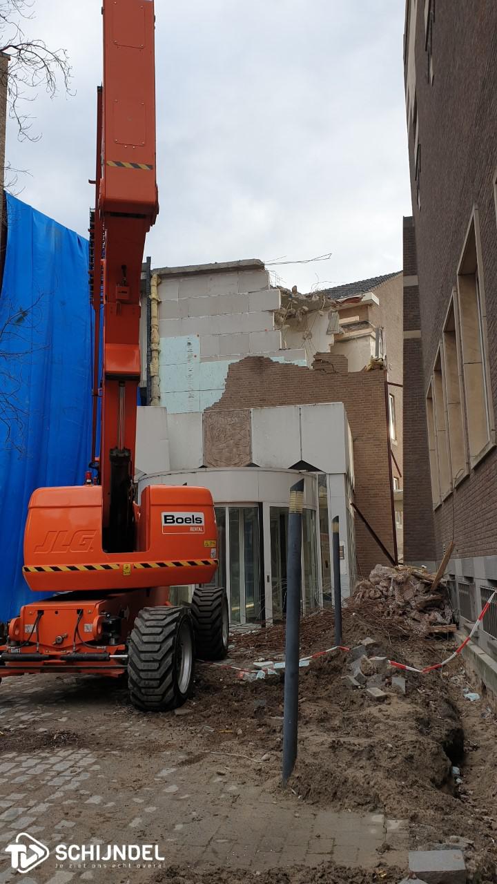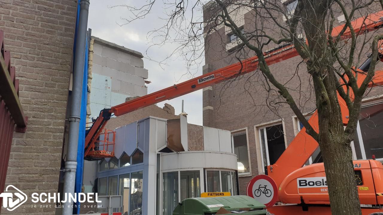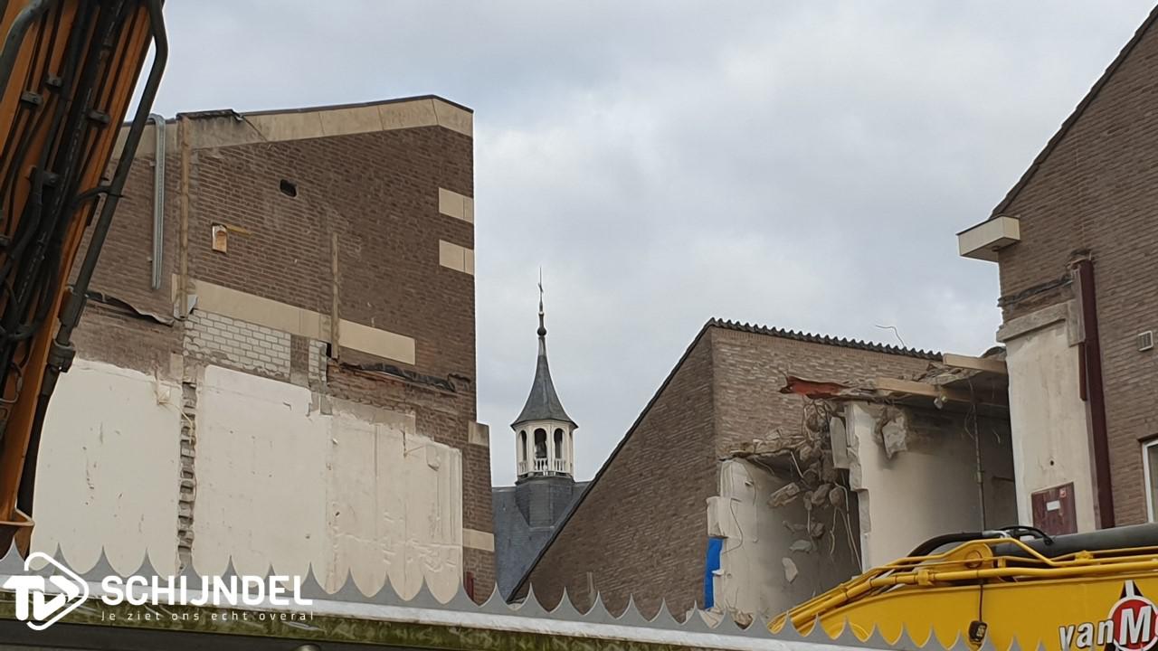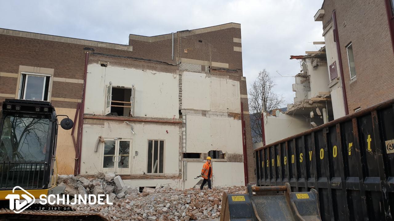 Schijndel - De gedeeltelijke sloop van het voormalig gemeentehuis van de gemeente Schijndel is in volle gang. De splitsing is zo goed als gerealiseerd. Afgelopen weken werden al enkele muren en vele ramen verwijderd. Vorige week werd begonnen met de sloop van de zogenoemde Ronde Kamer aan de achterzijde. Afgelopen dagen zijn de laatste muren die het nieuwe en oude gedeelte aan elkaar verbonden, ook met de sloophamer naar beneden gehaald. Vanaf de voorzijde zijn de woningen aan het Verlengde Kloosterpad nu bijna zichtbaar. Vanaf de achterzijde is het kleine kerktorentje van de Sint Servatiuskerk zichtbaar tussen de nieuw- en oudbouw door. De splitsing was nodig vanwege de nieuwe plannen met het voormalig gemeentehuis. Onder 'lees meer' enkele foto's. |