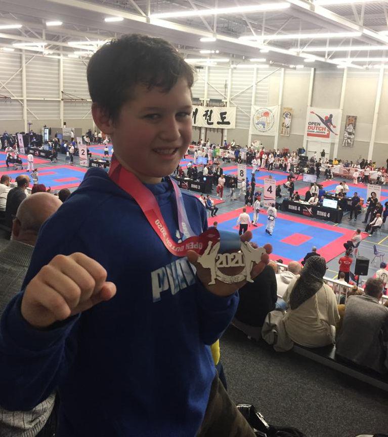 Helmond - In Helmond vond zaterdag 25 januari j.l. de Open Dutch plaats. Een groot internationaal Taekwon-Do toernooi waar zo’n 700 deelnemers van 99 clubs uit 23 landen aan meededen. Vier leden van Chong do Kwan deden een poging om een podiumplaats te veroveren. De poules waren groot en ze moesten er hard voor werken. Helaas bleek in veel gevallen de tegenstand nét een maatje te groot. Dyon Jellema won bij het sparren van deelnemers uit Oekraïne, Duitsland en Ierland. Tijdens een spannende finale met twee keer verlenging verloor hij en behaalde de zilveren medaille in zijn poule.