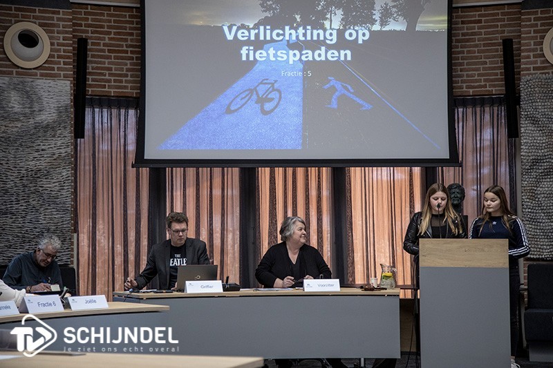Schijndel - De 26e editie van de politieke jongerendag van het Elde kreeg vandaag een unieke afsluiting. Vijf fracties gingen aan de slag met het project rond lokale democratie en de gemeenteraad. Hier leest u een verslag van deze dag, maar de aanwezige raadsleden van de politieke partijen CDA, Hart, HIER en PvdA gaven aan dat het voorstel van een van de fracties om een zogenaamd Glow-in-the-dark fietspad aan te laten leggen hen zo'n goed idee leek dat zij het als motie willen inbrengen in de raad. Arie de Zwart van de PvdA: "We willen de raad vragen een onderzoek te doen naar de haalbaarheid van zo'n fietspad, die er vooral op is gericht om in een donkere omgeving een fietspad beter zichtbaar te laten zijn". Woordvoerder Inge Fassbender (17) heeft zich al de hele dag met hart en ziel ingezet voor het voorstel van haar fractie: ze had zelfs al toezeggingen voor extra subsidie van een externe partij. Toen bleek dat het voorstel van haar fractie geen meerderheid kreeg in de raad, stapte zij ook naar raadsleden toe om te vragen of zij nog wat met hun voorstel konden doen. Wat zij toen nog niet wist, was dat deze raadsleden al een plan hadden om de gemeenteraad hierover te bevragen. De Zwart: "Wij willen dat de jongeren die dit idee hebben aangedragen, ook komen inspreken bij de commissievergadering, waar we de motie willen indienen. Het is per slot van rekening hun idee!"