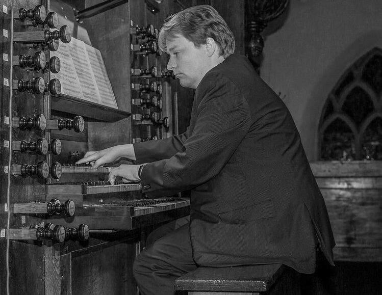 Tommy van Doorn bespeelt de beiaard (foto boven) en het orgel (foto beneden)