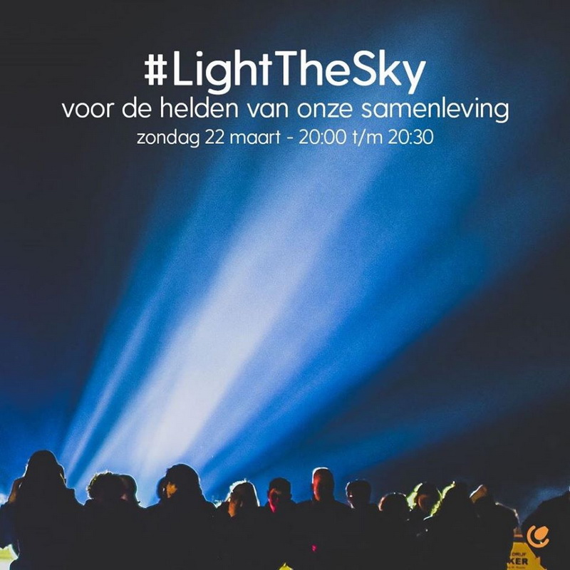 Oproep initiatiefnemer: Delighted uit Ruurlo (Gld) "Afgelopen weken zijn er harde klappen gevallen in onze evenementenindustrie door de uitbraak van het COVID-19 virus. Ookal zijn dit economisch zware tijden, de gezondheid van ons allemaal blijft voorop staan. De afgelopen week zijn er een aantal solidariteitsacties gedaan om de helden van de samenleving, de mensen die keihard aan het werk zijn om ons zo veel mogelijk van dienst te zijn in deze crisis een steuntje in de rug te geven. Ook wij kunnen een solidariteitsactie ondernemen. Ik stel voor om aanstaande zondag (22 maart) met z'n allen vanaf 20.00 tot 20.30 uur een fixture (bijvoorbeeld een movinghead) vanuit de opslag in de lucht te laten schijnen om solidariteit te tonen. Voor degene die keihard aan het werk zijn en degene die door deze crisis een steuntje in de rug verdienen. Doe jij ook mee? #LightTheSky "