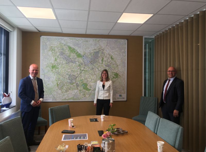 Meierijstad - Op woensdag 15 april heeft de heer Raymond Knops, staatssecretaris Binnenlandse Zaken en Koninkrijksrelaties een werkbezoek gebracht aan gemeente Meierijstad. De staatssecretaris sprak met burgemeester Van Rooij over de Coronacrisis. De heer Knops werd in het gemeentehuis van Meierijstad ontvangen door burgemeester Van Rooij. Zij spraken onder andere over de impact van het coronavirus binnen de gemeente Meierijstad, waar het aantal besmettingen en dodelijke slachtoffers hoog is. Ook spraken zij over de wens om onderzoek te laten doen naar dit hoge aantal alsook het op-afstand-vergaderen. De staatssecretaris stak de burgemeester en daarmee heel de bevolking van Meierijstad, een hart onder de riem en sprak zijn waardering uit voor de gecoördineerde aanpak van de gemeente Meierijstad en de samenwerking met de zorg- en onderwijsinstellingen in Meierijstad. Eerder op de dag bracht de staatssecretaris ook een bezoek aan de gemeente Uden.