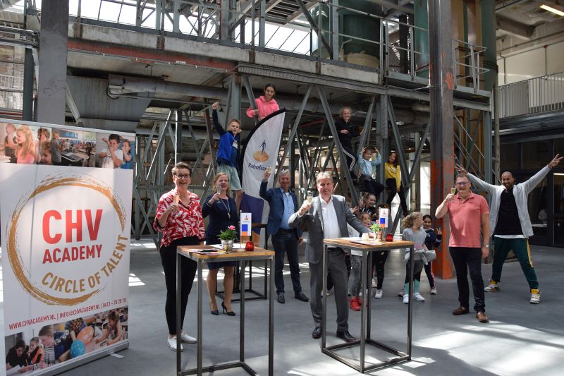 Meierijstad - Op vrijdag 5 juni werd de samenwerking tussen Rabobank Uden Veghel, Rabobank Hart van De Meierij en CHV Academy feestelijk beklonken op de CHV Noordkade in Veghel. Rabobank Uden Veghel tekende voor een verlenging van de samenwerkingsovereenkomst voor drie jaar en ook Rabobank Hart van De Meierij sluit zich voor in ieder geval de komende drie jaar aan bij het partnerschap. In het bijzijn van Phoenix Cultuur directeur Barbara Brouwer en coördinator Marc van Kessel – initiatiefnemers van CHV Academy, Circle of Talent – ondertekenden Rabobank-directeuren Erik Jansen en Tatjana Schreuder-Tijhuis, samen met Phoenix-voorzitter Martien van den Hoven, het partnerschap voor de komende drie jaar. Het feestelijke tekenmoment werd bijge-woond door enkele jonge hiphop-talenten en hiphop-docent Kai Tholen.