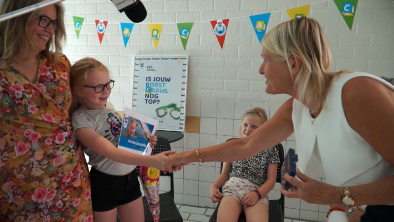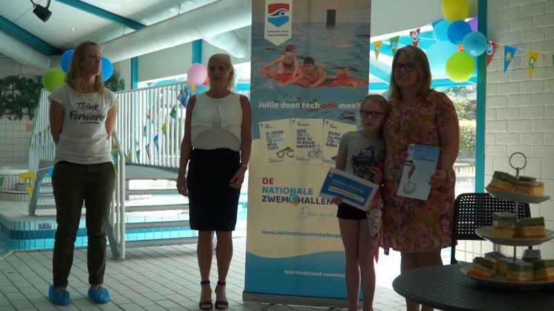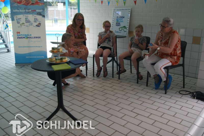 Schijndel – Vorig jaar werd, tijdens de Nationale Maand van de Zwemveiligheid , de Nationale ZwemChallenge gelanceerd. Een nieuw concept voor zwembaden, zwemscholen en zwemverenigingen die in het bezit zijn van de Licentie Nationale Zwemdiploma’s om de zwemveiligheid van kinderen en volwassenen op een uitdagende manier te testen. Gisteren 20 juli werd in zwembad de MolenHey door het instructieteam, samen met regioadviseur Ellen Schripsema van de Nationale Raad Zwemveiligheid, teruggekeken en de sessie van dit jaar afgerond. Ook werd de familie Broeksteeg verrast met een leuke prijs, een lang weekend in een vakantiehuis ter waarde van 400,— euro. TVSchijndel was erbij. Bekijk ook de videobeelden. Meer foto's zie je in ons fotoboek