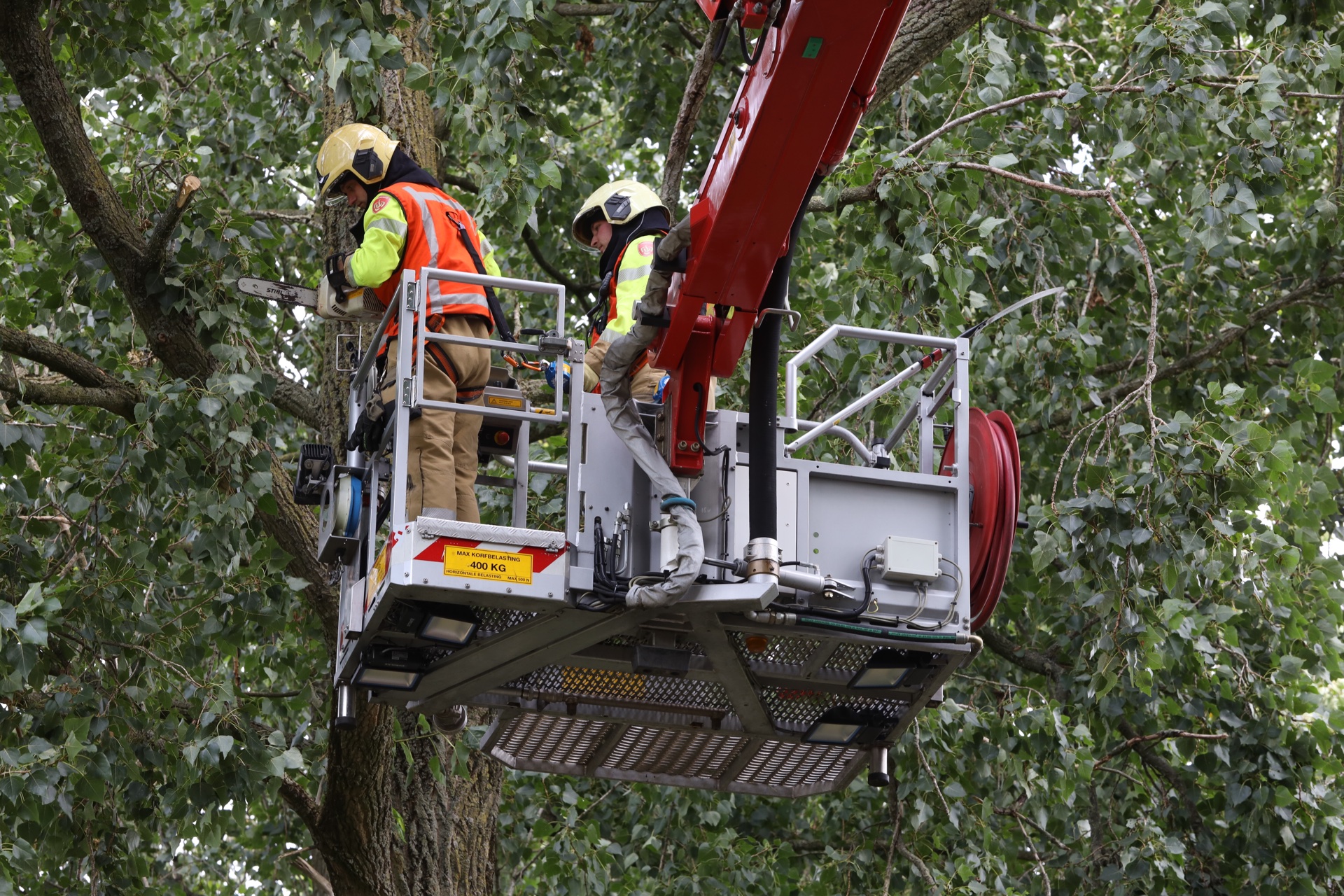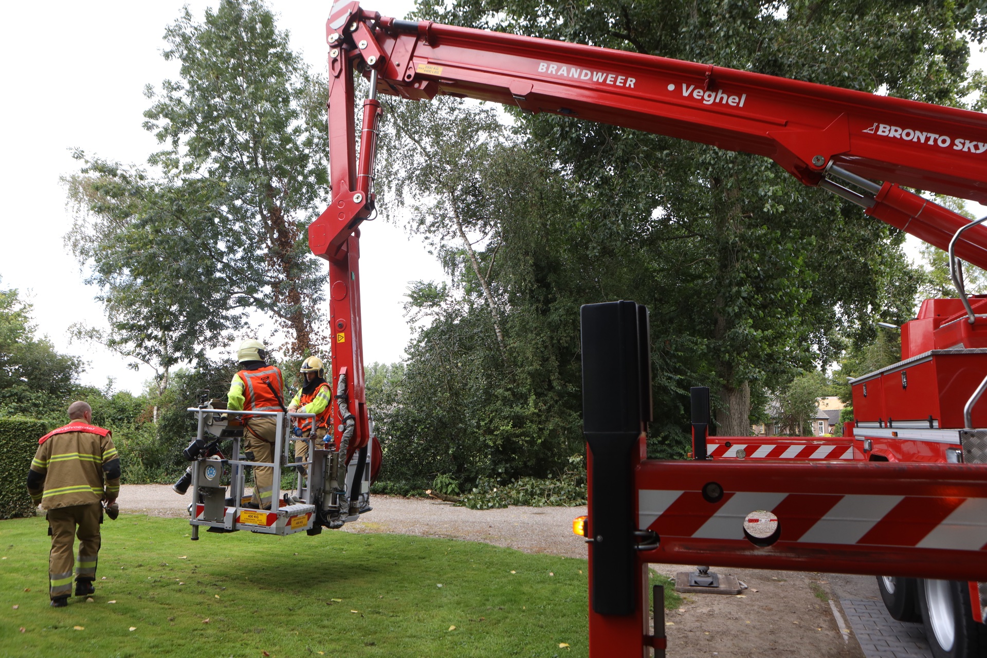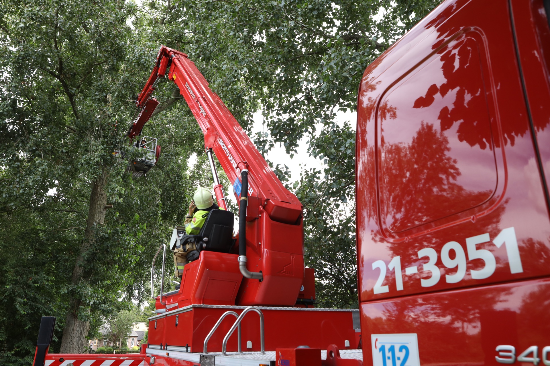 Schijndel - De brandweer heeft zondagmiddag loshangende takken verwijderd uit een boom aan de Hopstraat in Schijndel. De weg was hierdoor enige tijd afgesloten. Met een hoogwerker werden de loshangende takken verwijderd uit de boom en later aan de kant van de rijbaan gegooid. Een buurtbewoner had melding gemaakt van de gevaarlijke situatie. Zowel de brandweer van Schijndel als de brandweer (hoogwerker) van Veghel werden opgeroepen voor dit incident. Foto's en info: Persburo Sander van Gils