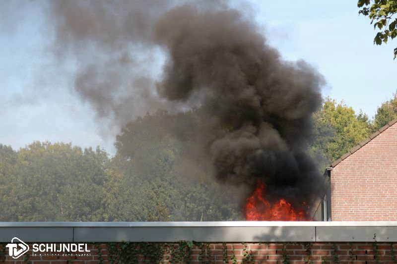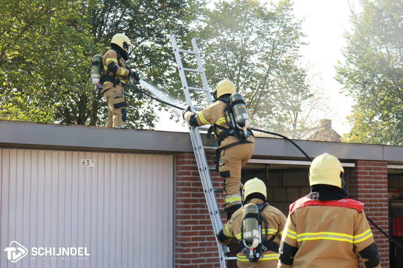Schijndel - Dinsdagmiddag rond half vier werd de brandweer van Schijndel met spoed opgeroepen naar de Van Oost-Frieslandstraat. Daar stond een dak van een garage in brand. Dit is gebeurd na werkzaamheden aan het dak. De werklui waren al een tijdje weg toen er plots rook en vlammen vanaf het dak te zien waren. De brandweer was snel ter plaatse en heeft met twee stralen de brand geblust. Ook werden er na het blussen nog metingen gedaan. Enkele dakrollen werden naar beneden gegooid en nog na geblust. Hoe de brand is ontstaan is onbekend. Enkele foto's onder lees meer, evenals een korte video. Meer beelden volgen later.