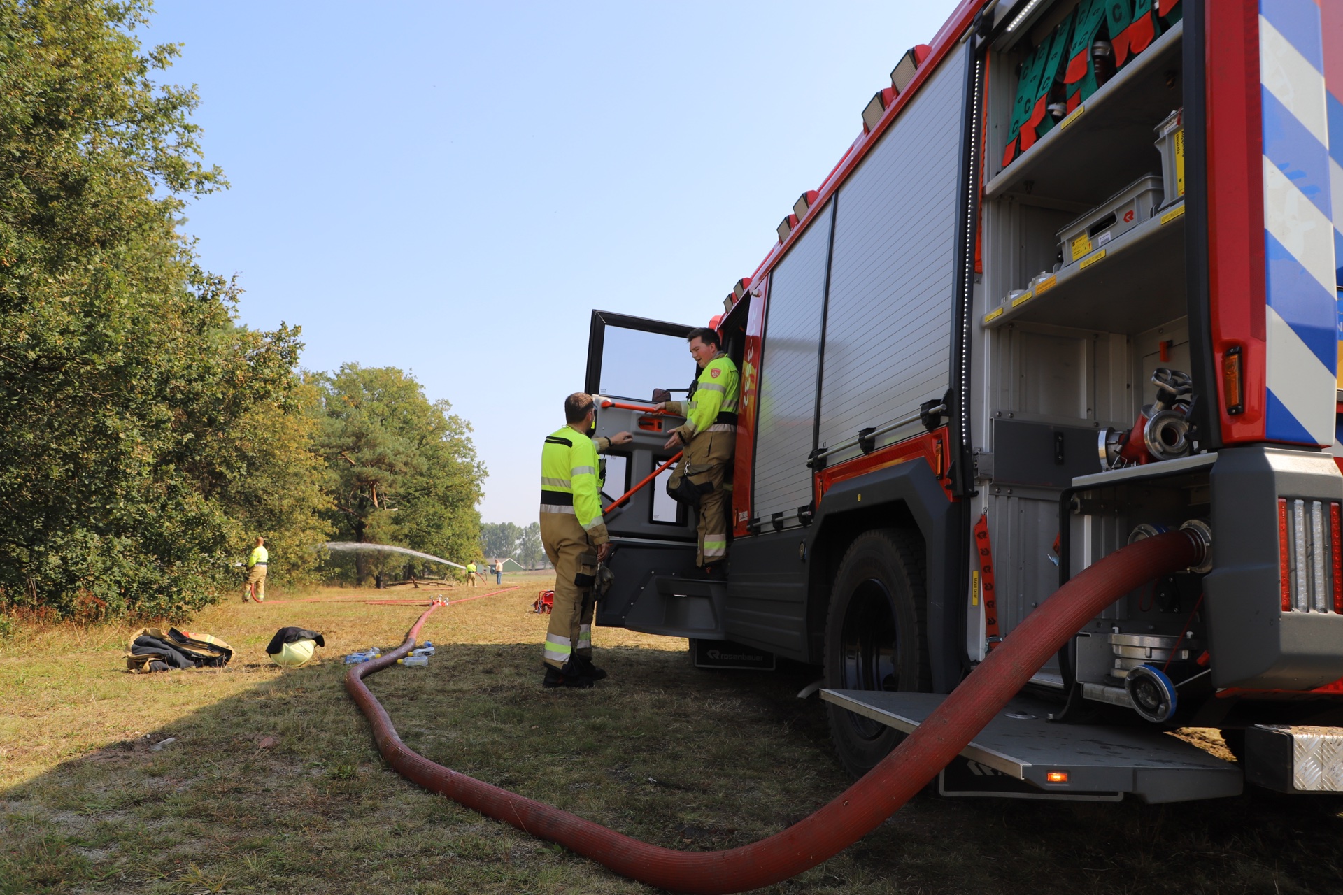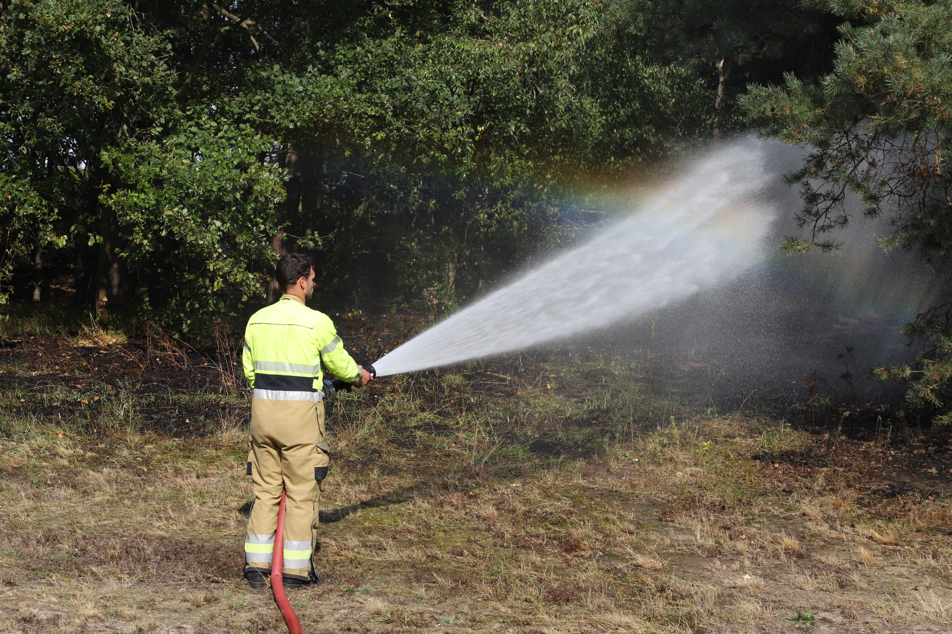 Schijndel - Woensdagmiddag omstreeks 12:30 uur werd de brandweer gealarmeerd voor een buitenbrand nabij de Galvaniweg in Schijndel. De brandweer had moeite om de brand te lokaliseren, daar de melding zou zijn dat het op de Landingsweg in Schijndel zou zijn. Uiteindelijk werd de brand gevonden en konden de brandweerlieden beginnen aan hun inzet. Volgens de bevelvoerder ter plaatse is een stuk van ongeveer 50 bij 10 meter verloren gegaan door de brand. Ook een waterwagen werd ingezet, deze heeft de tankautospuit tot twee keer toe voorzien van bluswater. Inmiddels is de brand onder controle en keren de brandweerlieden terug naar de kazerne. Info en foto's: Persburo Sander van Gils