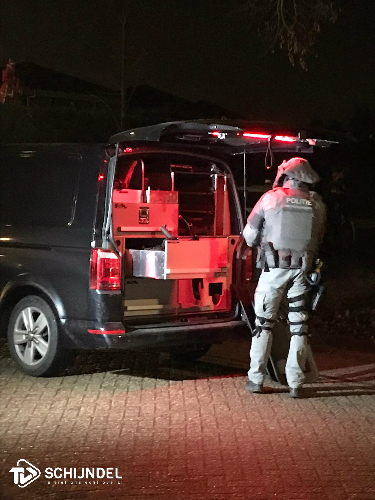 Schijndel - Dinsdagavond 15 december was er een grote politie inzet op de Boschweg bij de voormalig pastorie. Meerdere politiewagens, opvallend en onopvallend, stonden vanaf vijf uur bij het pand. Een onderhandelaar (tekst te zien op zijn hesje) kwam later ook aan bij de woning met veel agenten. Ook een arrestatieteam en politiehond waren aanwezig bij het pand. "Binnen in het pand bevindt zich een verward persoon en wij gaan deze proberen zo veilig mogelijk het pand uit te krijgen", aldus woordvoerder Dion Luijten aan TVSchijndel. Er stonden op het hoogtepunt meer dan vijftien politievoetruigen aan de Boschweg, ook bij de HeerenMeester staan voertuigen geparkeerd van de Dienst Speciale Interventies (DSI). Op het pleintje maakte het team zich rond zeven uur klaar om de woning te betreden. Tussen half acht en acht uur waren meerdere explosies te horen. Deze waren afkomstig van de DSI, zo liet de politie weten. Het waren flitsgranaten om de verwarde persoon te desoriënteren zodat hij sneller aangehouden kon worden. Rond kwart over acht werd de man door de politie in een arrestantenbusje weggebracht. Er raakte niemand gewond en voor de andere bewoners is slachtofferhulp ingeschakeld volgens de politie op Twitter. Enkele foto's en video's onder 'lees meer'.
