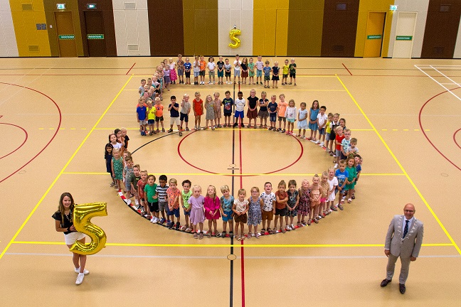 Meierijstad - Vrijdagmiddag vond het fotomoment plaats van alle kinderen in Meierijstad die dit jaar 5 zijn geworden of nog 5 jaar worden dit jaar. Dit om te vieren dat Meierijstad dit jaar 5 jaar bestaat. In sporthal de Streepen in Sint-Oedenrode kwamen alle kinderen bij elkaar en gingen ze allemaal op de foto met Burgemeester Kees van Rooij en kinderburgemeester Elin. Er waren ongeveer 170 kinderen aanwezig. TVSchijndel was er bij maakte er ook een mooie fotoreportage van. U kunt de foto's zien in ons fotoboek. foto Arno van Alebeek