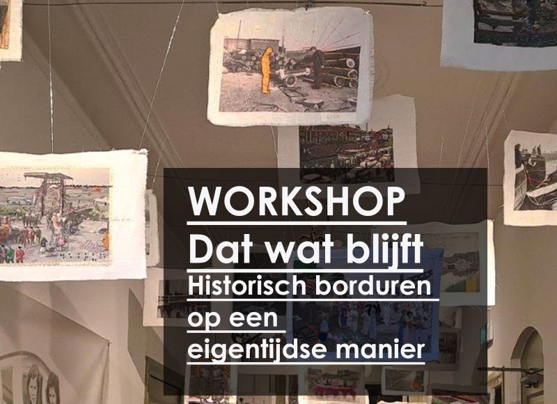 Borduren Binnen het project Dat Wat Blijft speelt niet alleen oral history, maar ook ‘het ambacht’ een belangrijke rol. Het ambachtelijke aspect van borduren kent al lange tijd een opleving (zowel als hobby, als binnen de beeldende kunsten). En borduren ‘kost’ tijd, het laat je langer kijken. De borduursels zelf geven een extra hedendaagse laag aan de historische afbeelding.