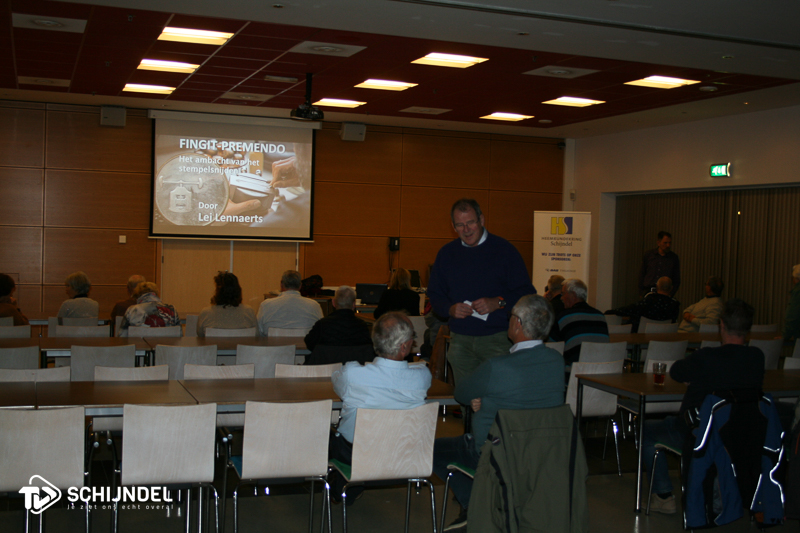 Er was een mooie opkomst en er werd aandachtig geluisterd naar de presentatie. Tijdens en na de lezing was er gelegenheid om vragen te stellen. De voorzitter van de Heemkundekring, Aart Voets, bedankte na de heer Lennaerts na afloop voor de heldere en duidelijke uitleg. Zeldzaam ambacht Het is een klein jaar geleden dat Lei Lennaerts de stempels maakte waarop de erepenningen van de Heemkundekring worden geslagen. Voordat een ontwerp daadwerkelijk leidt tot een penning zijn er veel tussenstappen genomen. Lei maakte de belangstellenden deelgenoot van de steeds zeldzamer wordende ambachten van de kopergraveur, de stempelsmaker en de handgraveur. Aan de hand van voorbeelden liet hij zien hoe stempels van munten en penningen gemaakt worden.