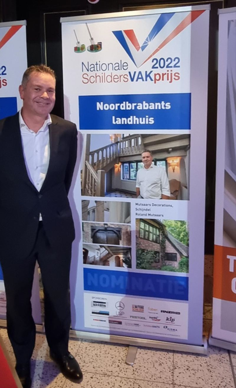 De jury koos in de categorie voor onderhoudsschilderwerk en decoratie- en restauratieschilderwerk voor Roland Mutsaars. Op de vraag ‘Hoe voelt dit?’ antwoordt Mutsaars: ‘Fantastisch. Deze prijs krijgt een prominente plek op ons kantoortje.’ Naast zijn uitstekende houtimitaties, imponeerden met name zijn marmerimitaties in het Vughtse landhuis.
