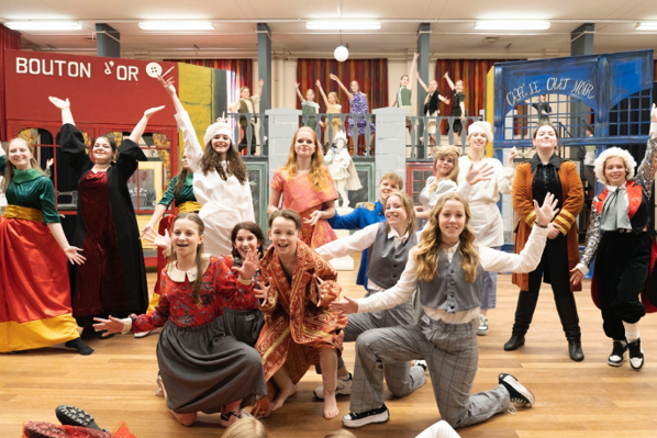 “Zonder grime nog wel, die krijgen we pas in het theater,” zegt Milan Hustinx (12), die de hoofdrol van Keizer speelt in de met ‘Assepoester’ vervlochten bewerking van het klassieke sprookje ‘De Nieuwe Kleren van de Keizer’. Dat is best spannend, want wie het verhaal een beetje kent: de Keizer eindigt zonder kleren aan op straat. “Gelukkig hebben ze een soort beige turnpakje voor me gemaakt, waardoor het alleen maar zo lijkt als ik daar op het podium sta,” lacht Milan.