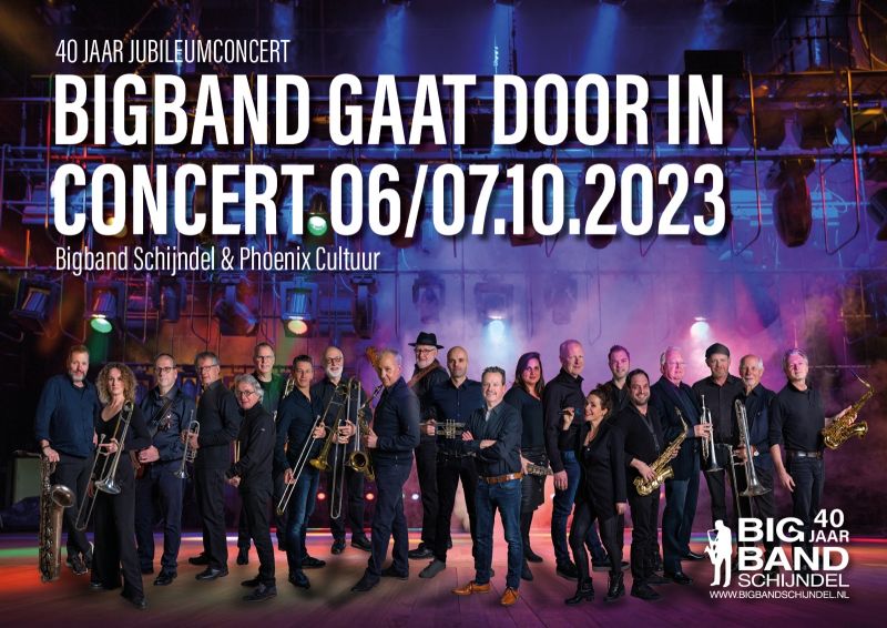 In 2023 viert de Big Band het 40-jarige jubileum! Samen met Phoenix Cultuur en diverse gastartiesten organiseren zij twee spetterende optredens. Onder de titel “Big Band gaat door” brengt Big Band Schijndel wederom nieuwe arrangementen ten gehore, waarbij een grote rol is weggelegd voor zangeres Lotte van der Heijden.
