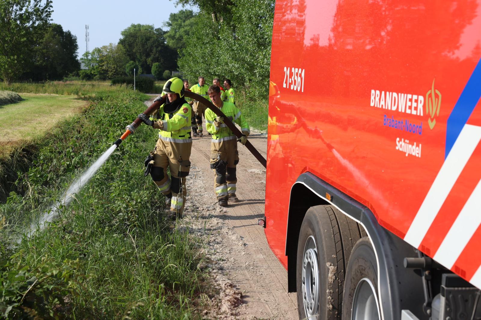 Schijndel - Aan het einde van de middag brak een forse bermbrand uit aan de Leemweg. De brandweer werd rond kwart voor zes opgeroepen. Ter plaatse bleek over een lange strook de berm in brand te staan.
