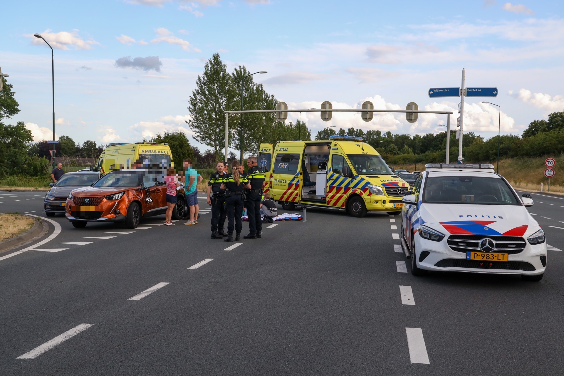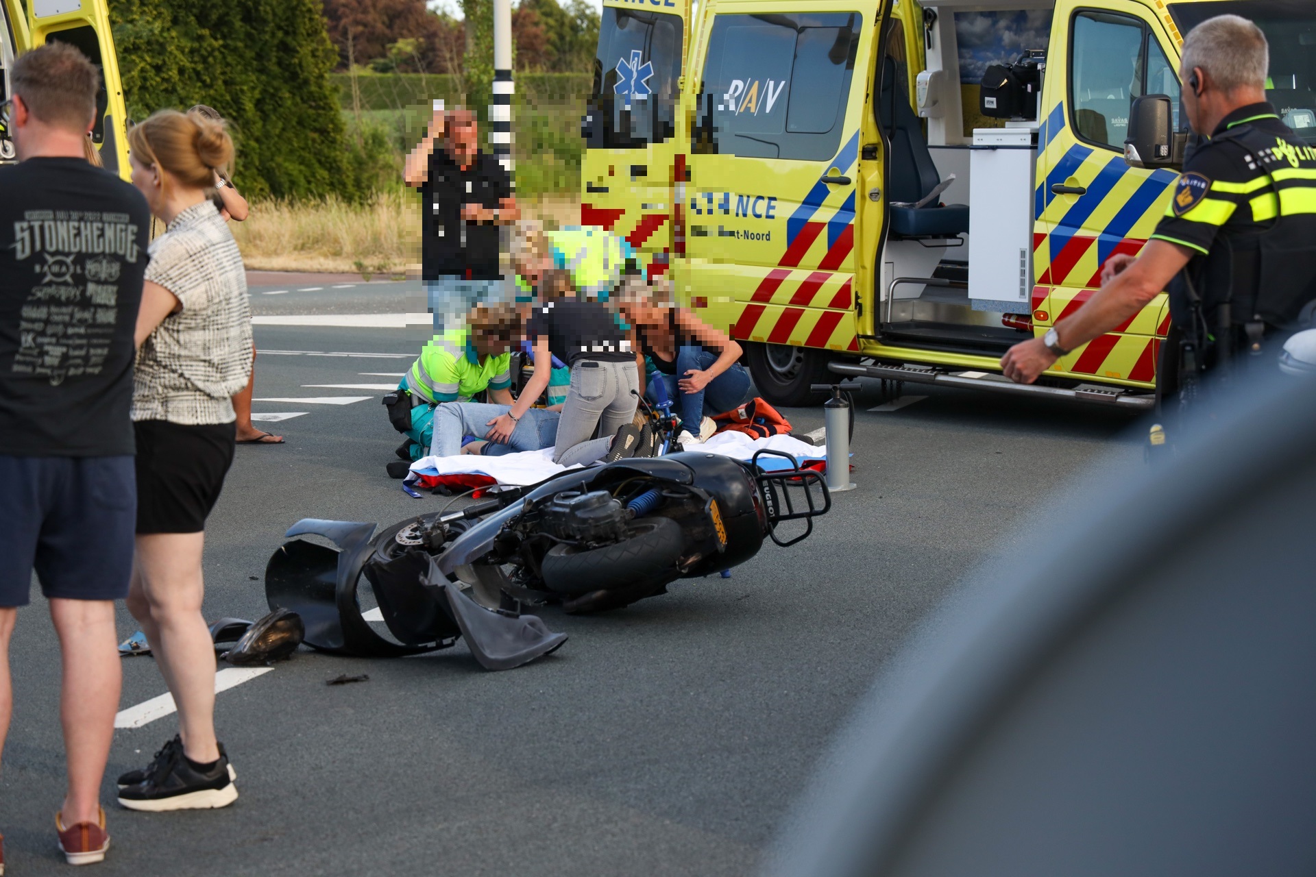 De andere opzittende, een meisje van 15, raakte zwaargewond en werd na ruim een uur behandeling ter plaatse naar het ziekenhuis gebracht. Enkele omstanders zouden hebben gezegd dat het mogelijk om een straatrace zou gaan, het groepje brommerrijders zou daarmee bekend zijn aldus de omstanders tegen Omroep Brabant. De politie kon hier op dit moment nog geen uitspraken over doen. De personenauto raakte door het ongeval ook flink beschadigd, de inzittende daarvan kwamen met de schrik vrij. info en foto's: Persburo Sander van Gils/Remco Rooijakkers