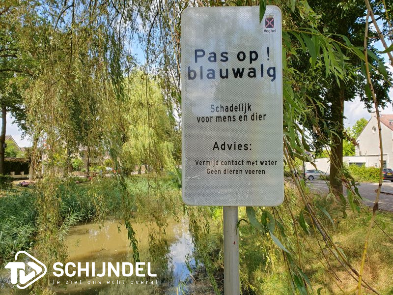 Schijndel - Waarschuwingsborden geven aan dat er blauwalg in het water van de grachten aan de Mgr. Bekkersstraat en Kerkendijk in wijk de Beemd is geconstateerd. De borden geven het advies om contact met het water te vermijden. Ook wordt aangeraden geen dieren te voeren.