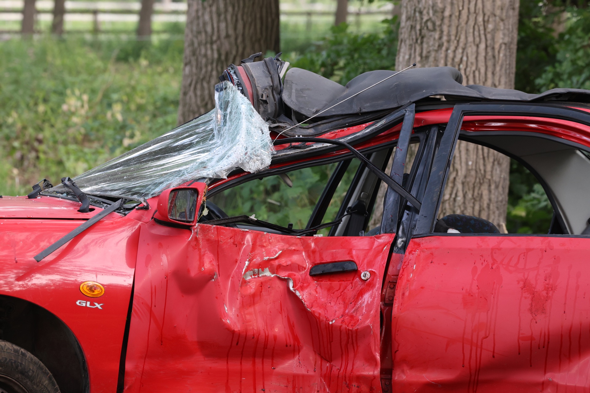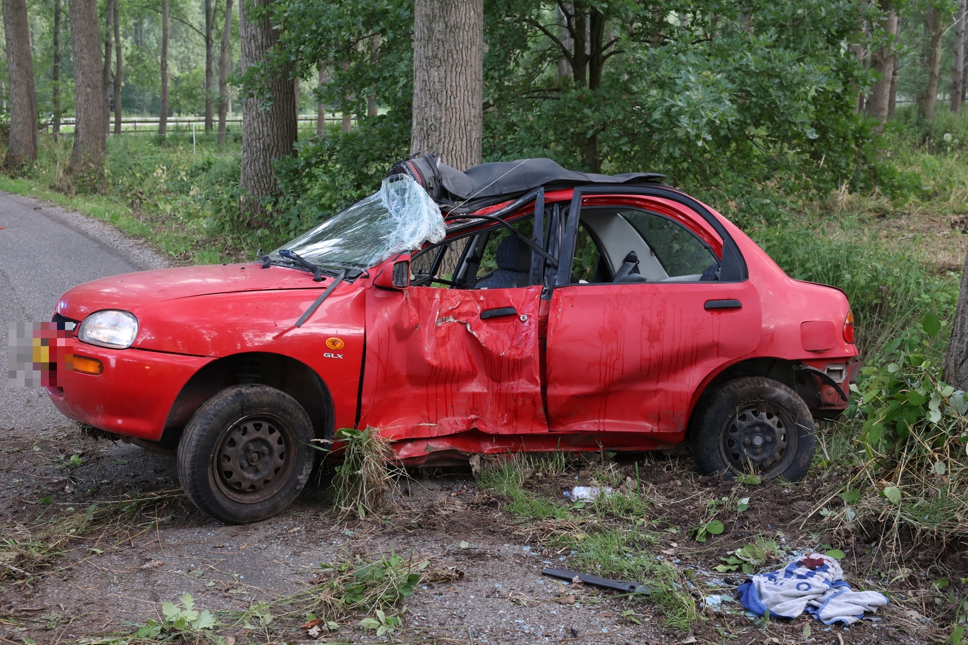 De auto liep grote schade op, de weg was enige tijd gestremd voor het overige verkeer. De automobilist is met onbekende verwondingen per ambulance overgebracht naar het ziekenhuis. Een bergingsbedrijf heeft de zwaar gehavende auto geborgen. Info en foto's: Persburo Sander van Gils