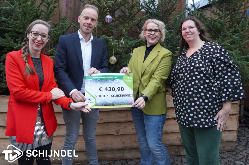 TVSchijndel reikt cheque Kerstwensboom uit aan Stichting Geluksboontje