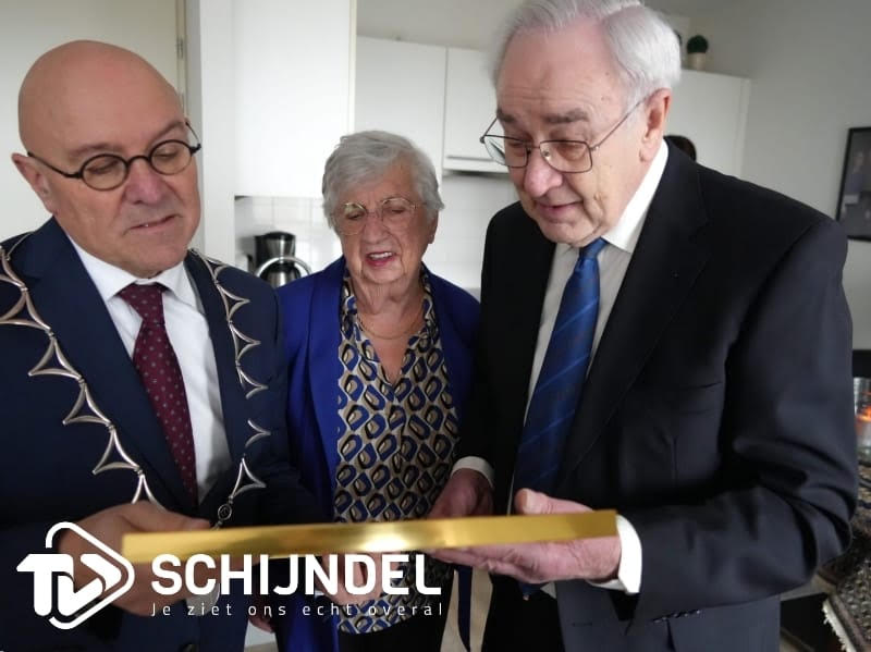 Op woensdag kwam burgemeester van Rooij bij hen langs om hen te feliciteren met dit heuglijke feit. Onder het genot van koffie en gebak overhandigde hij hen de oorspronkelijke trouwakte. Ook TVSchijndel was bij dit bezoek aanwezig en maakte bijgevoegde video. (info en foto's: familie Sanders)